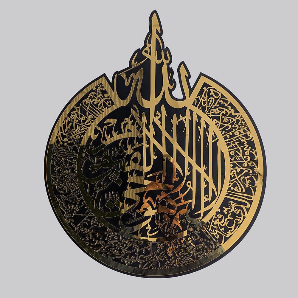 Ayat-ul-Kursi – Golden Acrylic on Black Wooden Islamic Wall Art